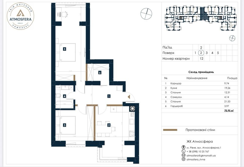 Квартири у новобудові ЖК Атмосфера - 71.25 м2 - фото 2