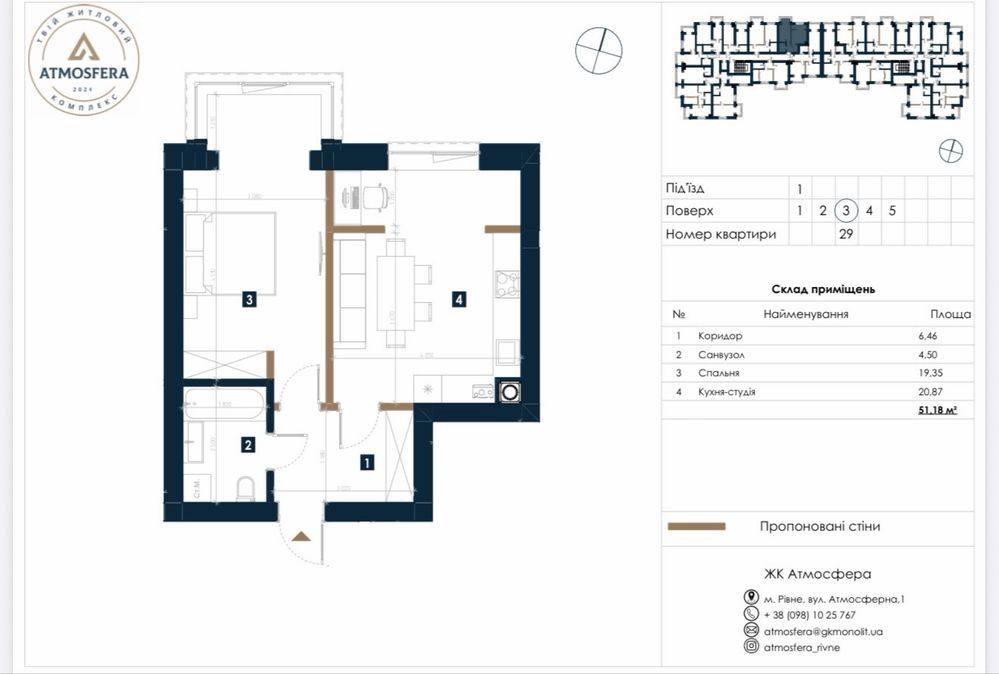 Квартири від Забудовника, ЖК «Атмосфера» 51.18 м2