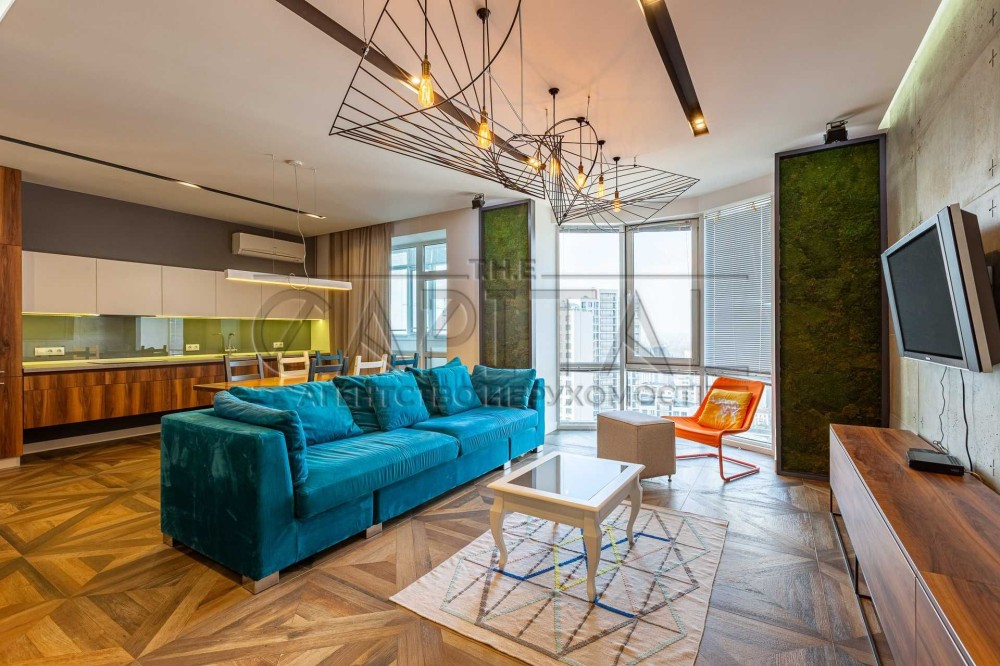 • Інтер’єр: Дизайнерський ремонт: бетонні панелі, акцентна стіна з натурального моху, панорамні вікна.
