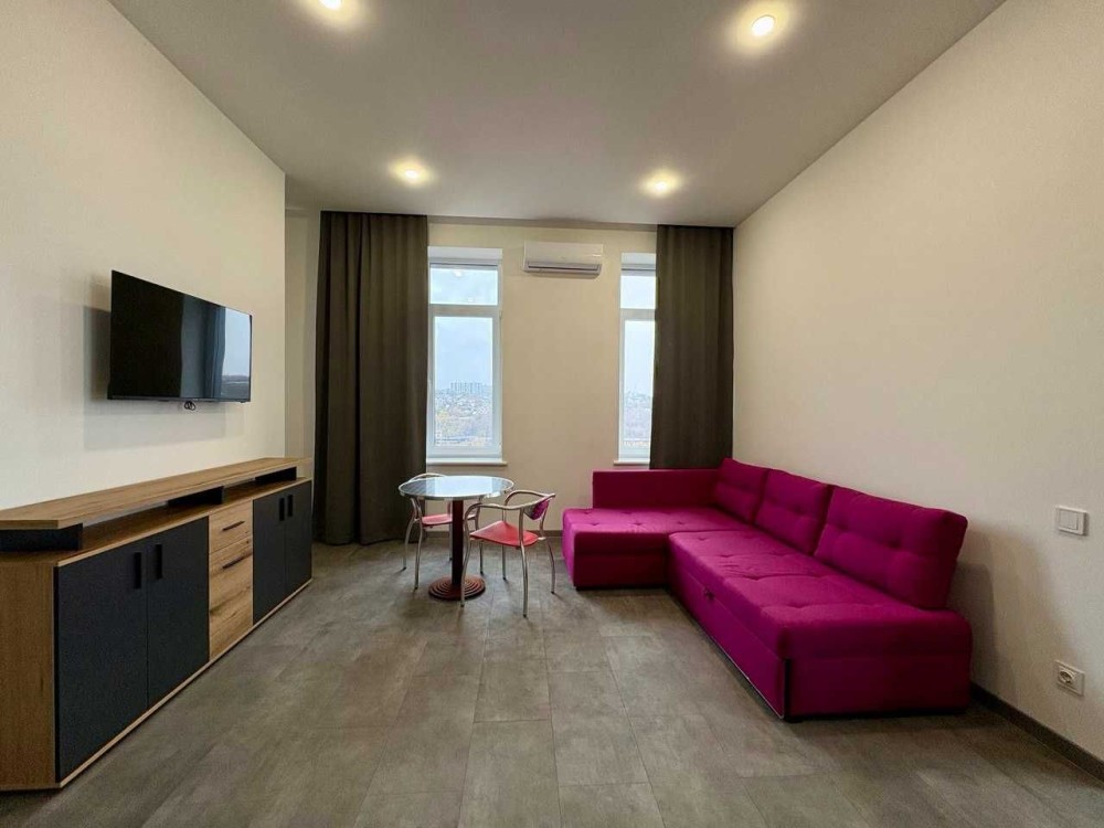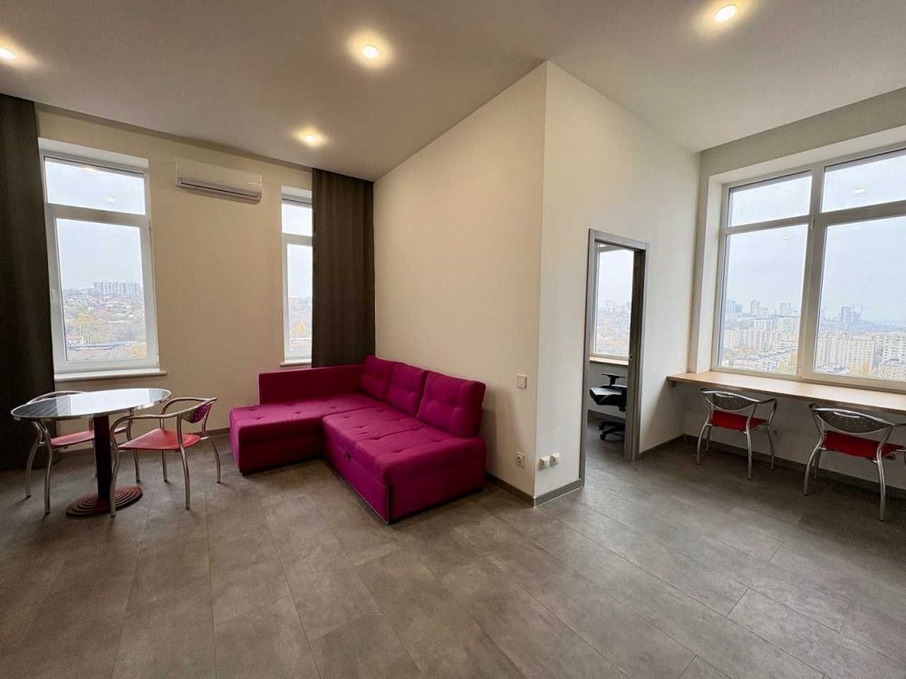Перша здача. Пропонується в оренду сучасна квартира в новобудові біля м. Житомирська (Берестейський пр-т, 131а). В будинку є генератор (завжди є опалення, вода та працює ліфт). Квартира укомплектована всіма необхідними меблями та технікою. У кімнаті - двоспальне ліжко, розкладний диван, письмовий стіл, кондиціонер, телевізор, велика шафа для одягу. Санвузол суміщений, душова кабінка. Тихий двір, велика парковка. До метро Житомирська - 10 хвилин пішки. Вартість 16000 грн. Умови оренди: оплата за два місяці та послуги рієлтора (50%). комісія: 50%