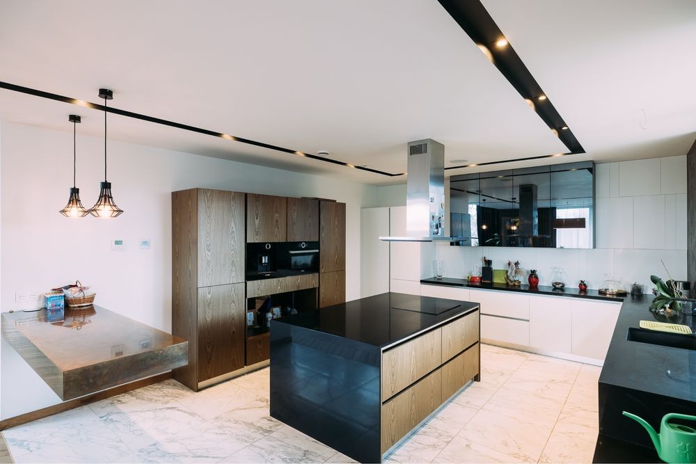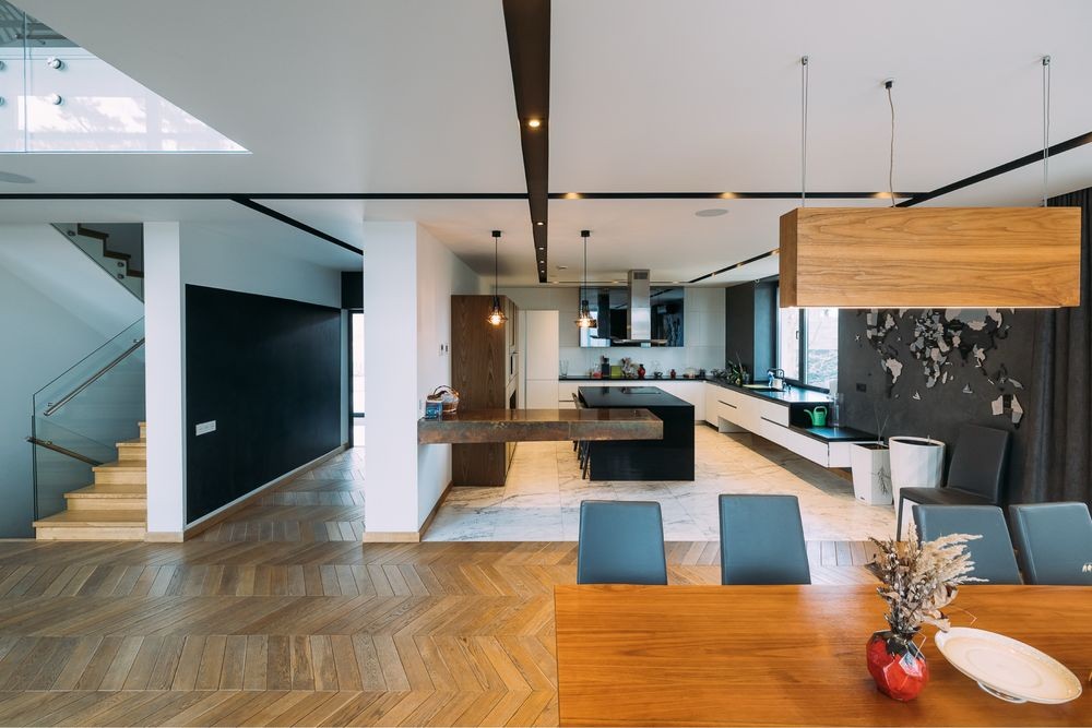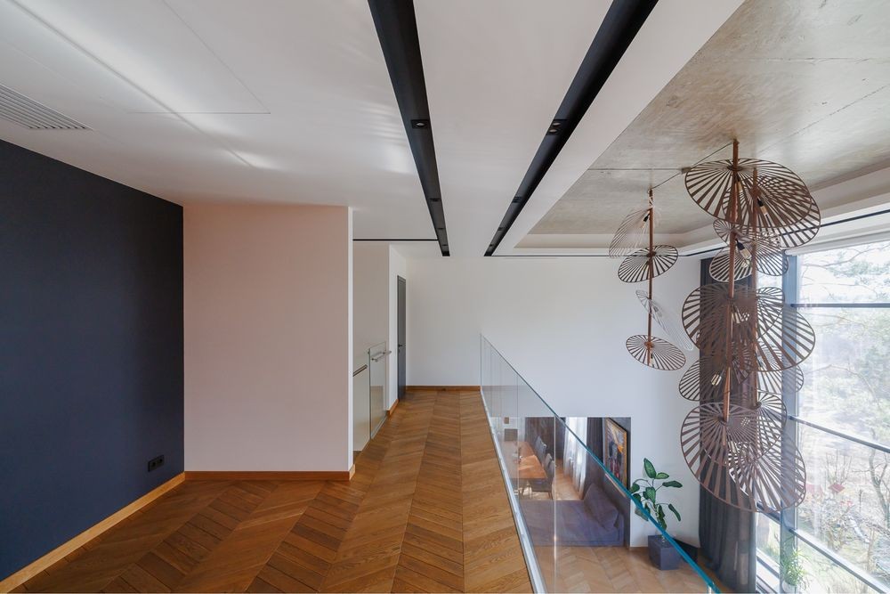 В будинку 4 поверхи, з яких нижній -2 технічний, -1 жилий + SPA зона, 1 і 2 повністю жилі поверхи, 2 гаражі. Будинок має 4 окремі спальні кімнати, велику ігрову залу, 4 санвузли, панорамну вітальню з другим світлом і камінним залом, 2 кухні, територію SPA безпосередньо в будинку, декілька відкритих терас.