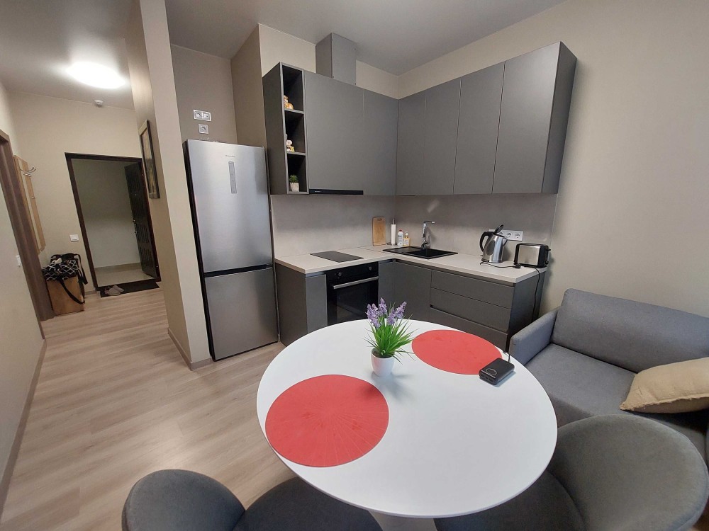 в КУХНЕ -встроенная кухня со все быт техникой, обеденный стол и 1-спальн диван
