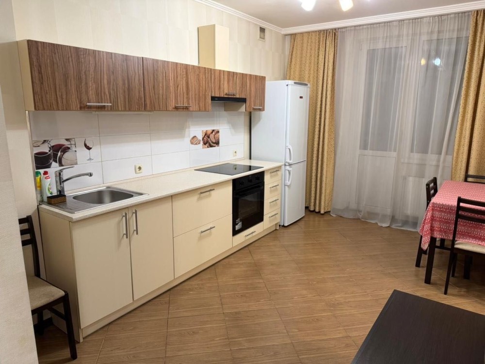 Перша здача. Пропонується в оренду сучасна квартира в новобудові біля м. Житомирська (Берестейський пр-т, 131а). В будинку є генератор (завжди є опалення, вода та працює ліфт). Квартира укомплектована всіма необхідними меблями та технікою. У кімнаті - двоспальне ліжко, розкладний диван, письмовий стіл, кондиціонер, телевізор, велика шафа для одягу. Санвузол суміщений, душова кабінка. Тихий двір, велика парковка. До метро Житомирська - 10 хвилин пішки. Вартість 16000 грн. Умови оренди: оплата за два місяці та послуги рієлтора (50%). комісія: 50%