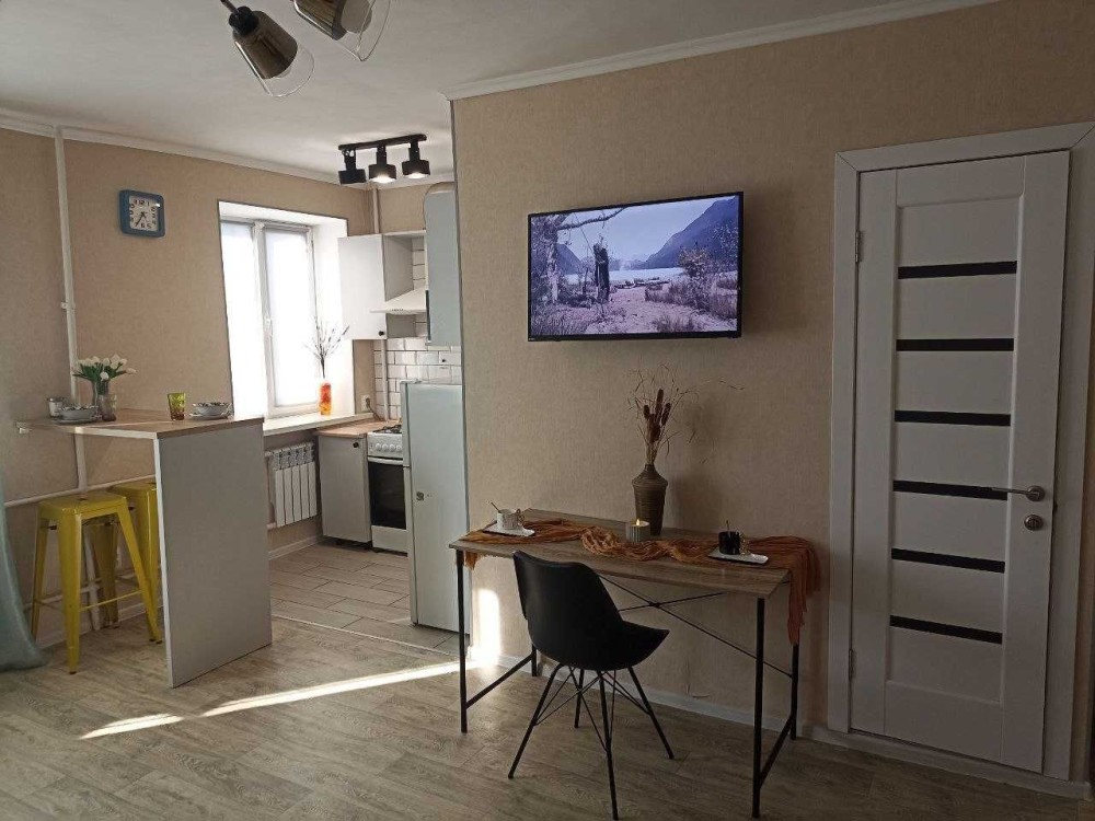Хорошая квартира-студия в доме магазина "Виктор", меблирована, современній ремонт и дизайн, интернет, кухонные и банные принадлежности, бытовая техника. Ванна, Набор для душа, Гардероб, Охраняемая территория, Парковочное место. Отчётные документы
