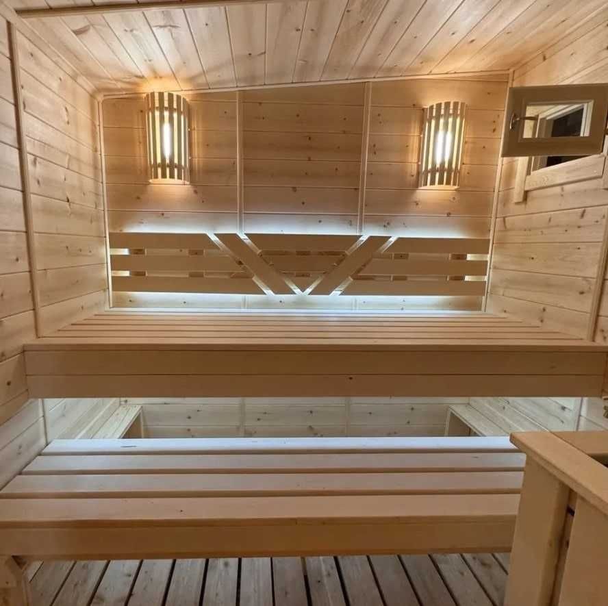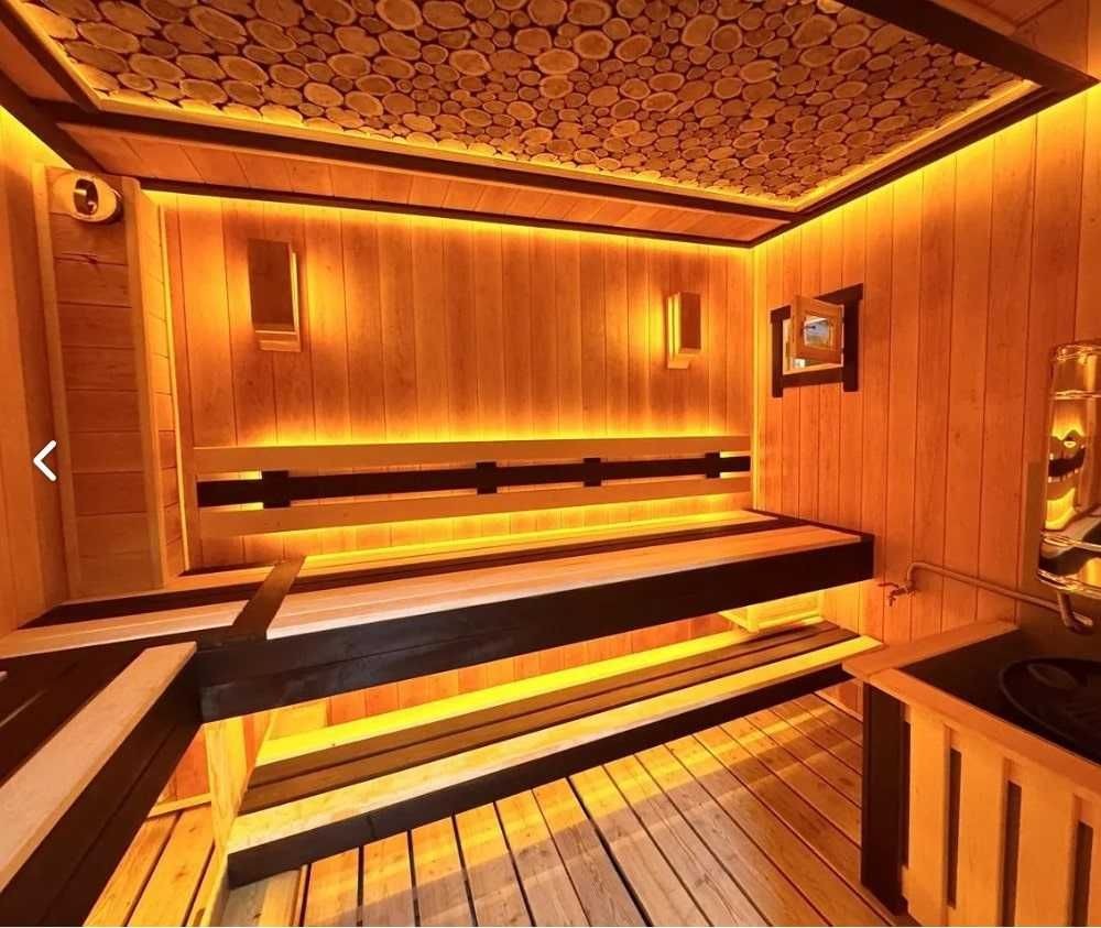 Парна (2.5 х 2.1 м): простора сауна з дворівневими полицями, розрахована на комфортне перебування кількох людей.