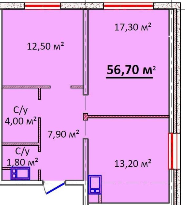 • Общая площадь 55 м2
