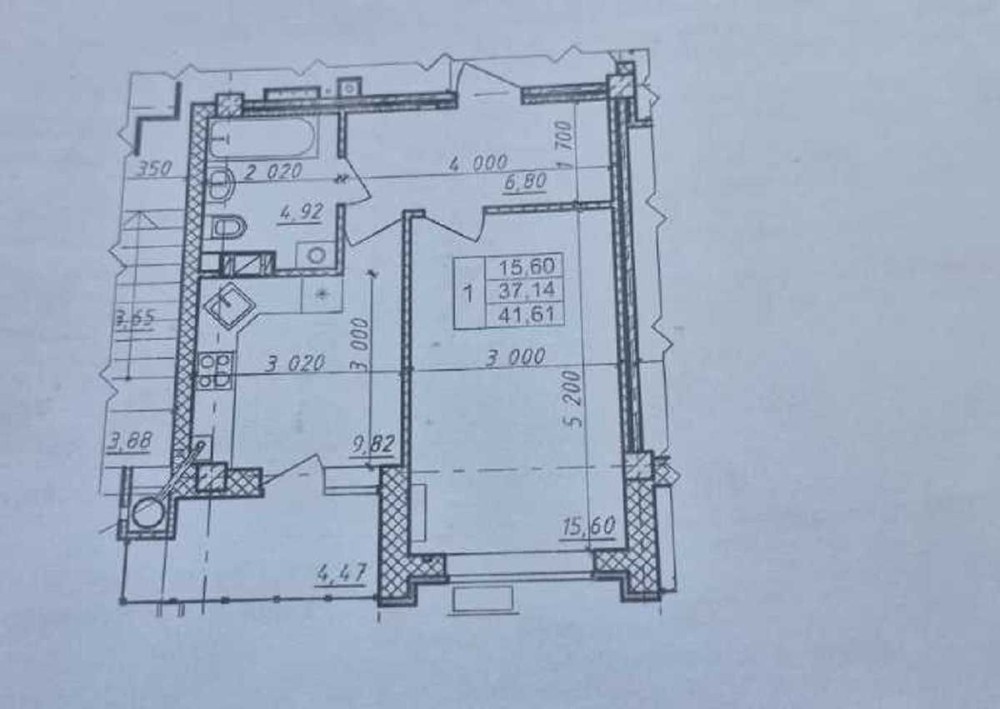 Продаємо однокімнатну квартиру площею 41.6 м² у новому будинку.