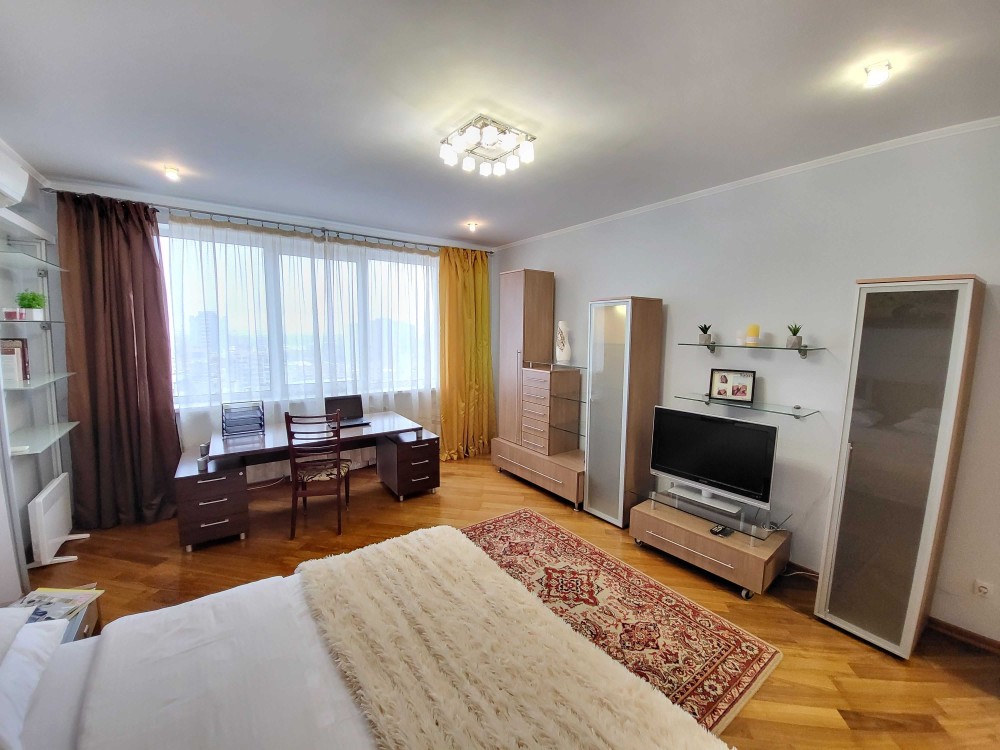 Однокімнатна квартира знаходиться на 23 поверсі 34-поверхового будинку. Вид на місто. У квартирі двоспальне ліжко 180*200. Будинок монолітний. Знаходиться в елітному місці нового житлового масиву Позняки за 2 хвилини від станції метро Позняки.