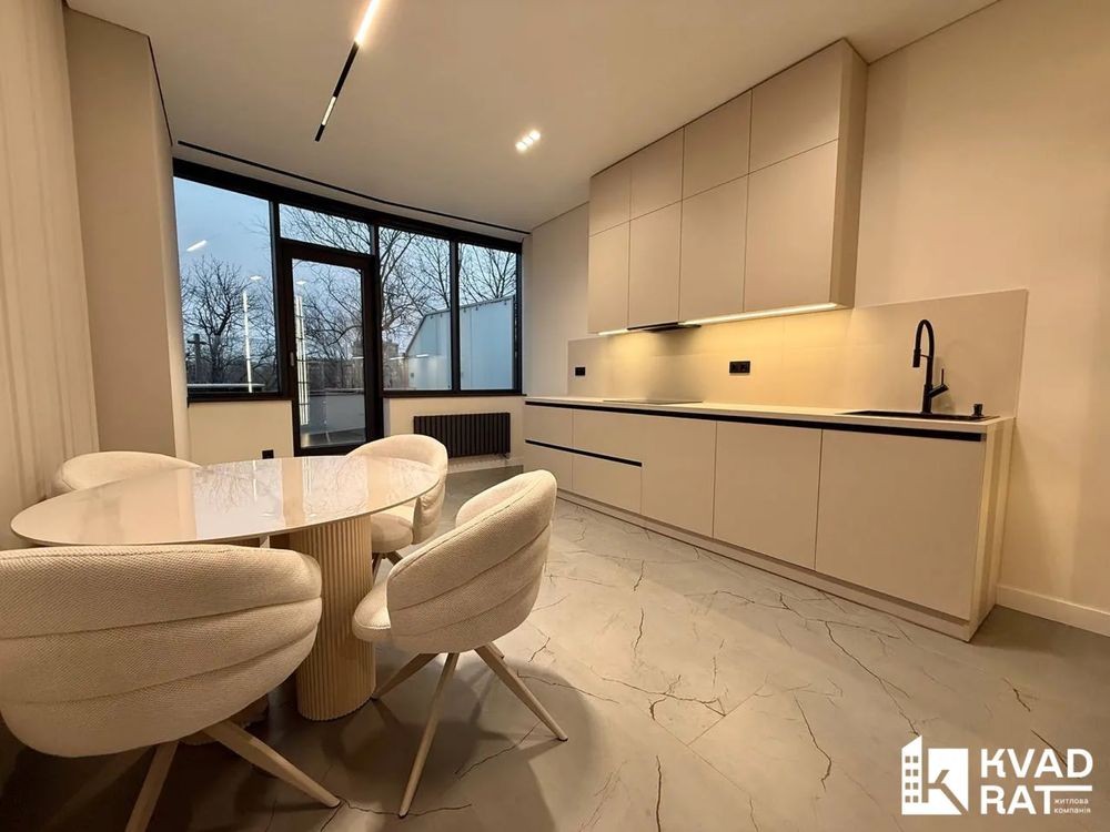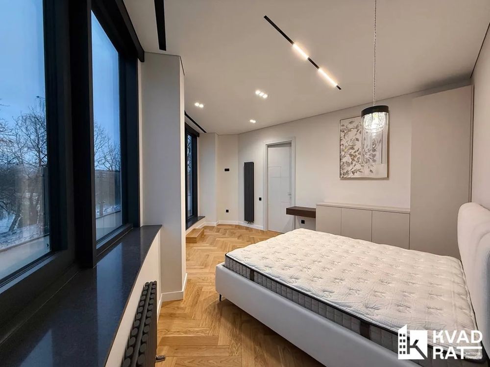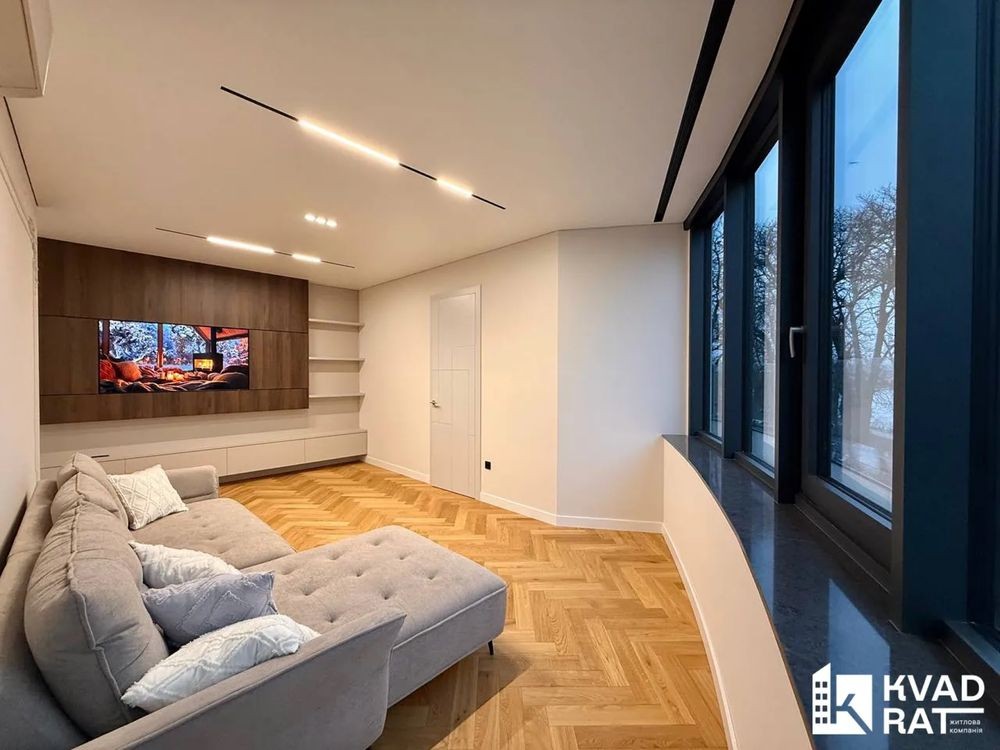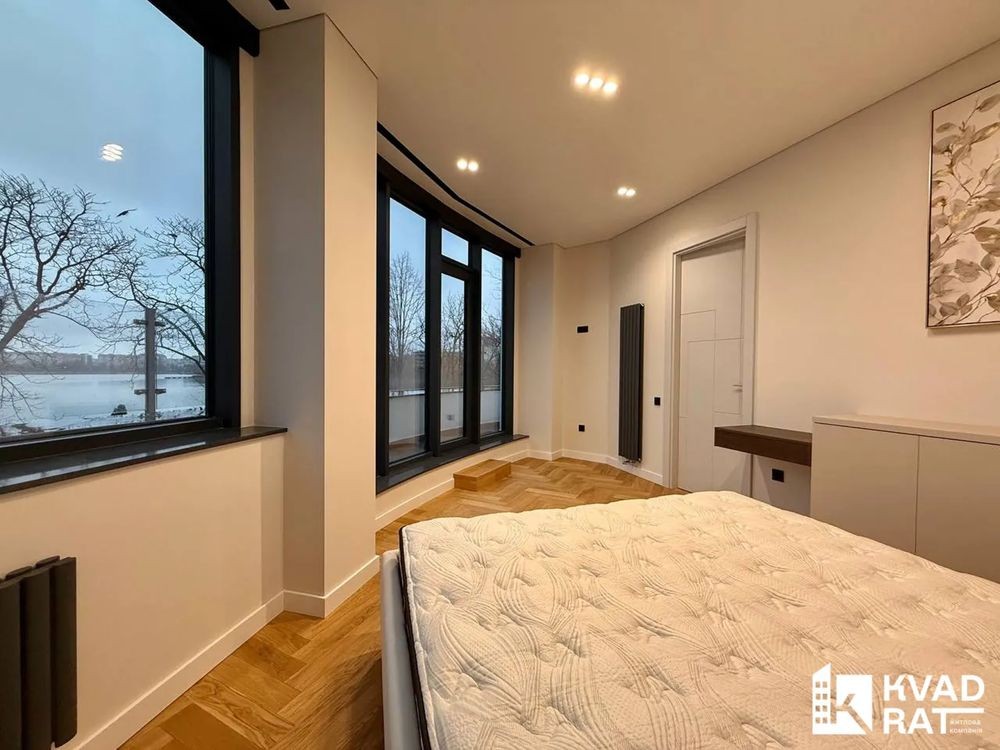 Квартира вражає фантастичним краєвидом на міське озеро, який відкривається з панорамних вікон та тераси. Унікальною перевагою є те, що вихід на терасу передбачений з кожної кімнати, включно з кухнею.