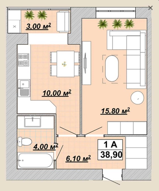 • Общая площадь 39 м2