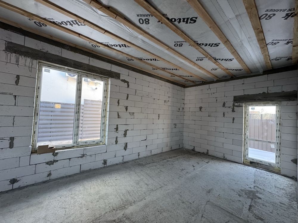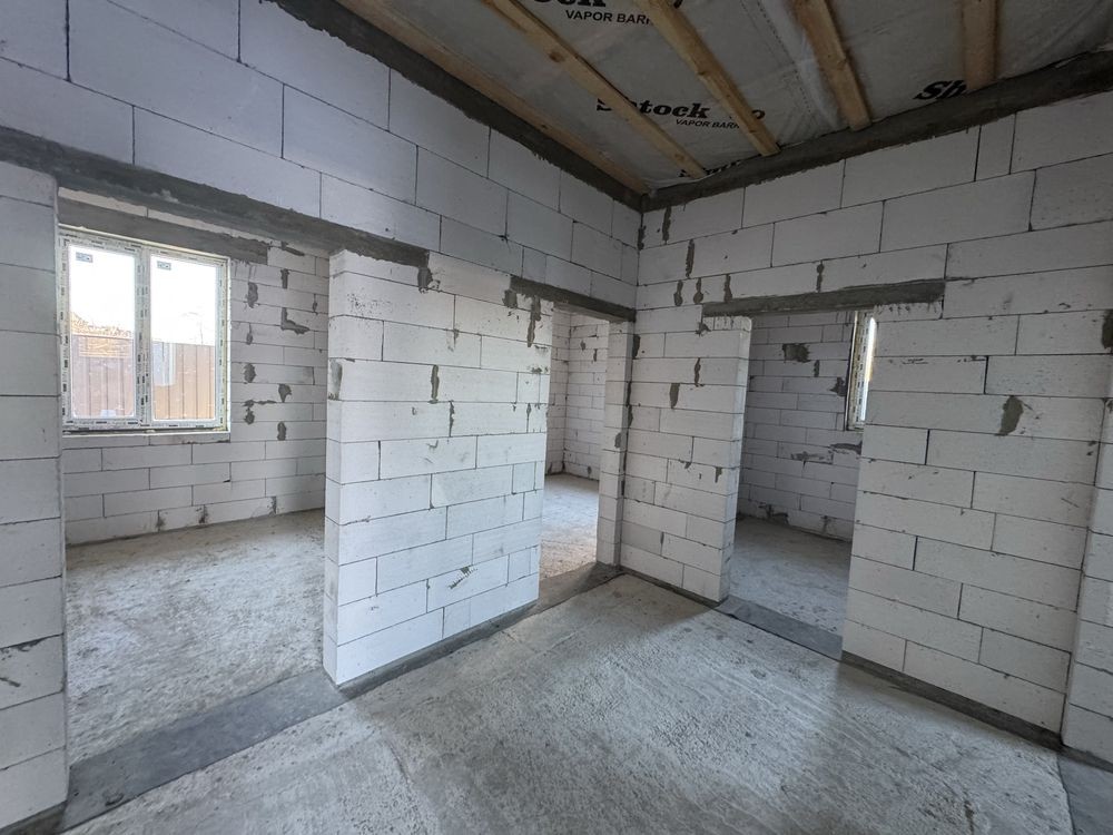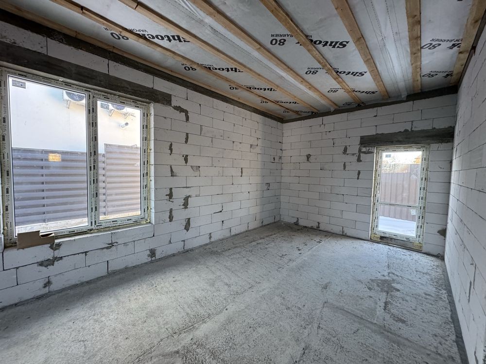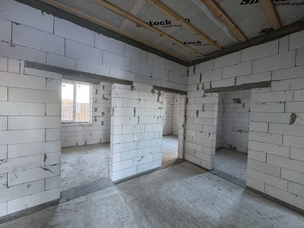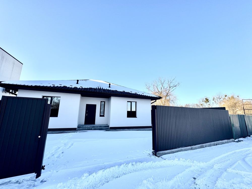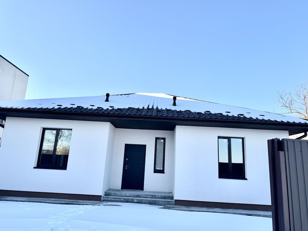 Продам просторий одноповерховий будинок 120 м в с. Софіївська Борщагівка вул. Л. Каденюка. Будинок побудований з якісного газоблоку 300 мм та утеплений пінопластом 10 см. Заведено 16кВ електрики, свій септик, скважина.