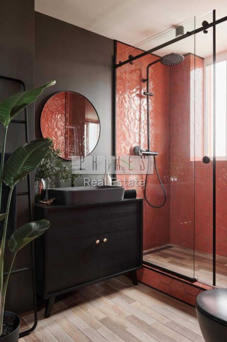 Теракотові та оливкові відтінки створюють теплу, насичену атмосферу, а жива зелень наповнює простір спокою та свіжістю.