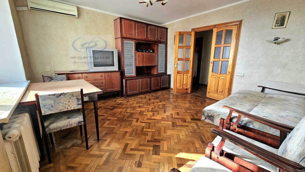 Квартира у житловому стані: збережений паркет, пофарбовані стелі, шпалери та кахель.