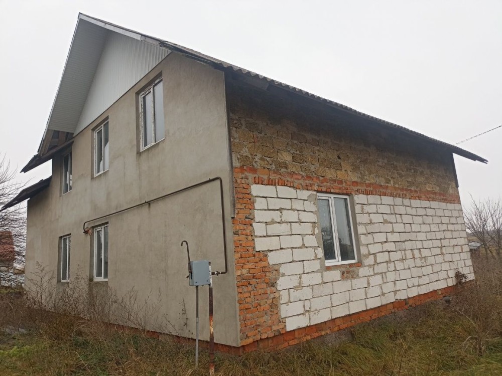 Продаю недобудований двоповерховий будинок.Будував для себе,виїхав за кордон.Будинок з блоків,перегородки цегляні,перекриття між поверхами-залізобетон(сам заливав).На другому поверсі планував перегородки з гіпсокартону.Вікна пластик. Збудований хлів з червоної цегли,викопана криниця у дворі.Змуровано груби під газ,проведено електропроводка.Установлено газовий та електролічильники.