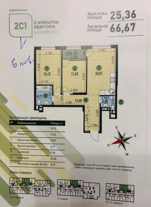 • Житлова — 25,36 м²