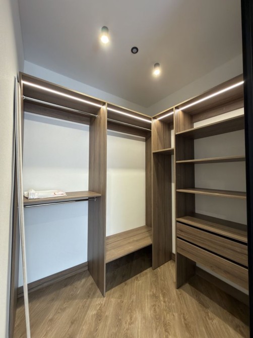 Простора кімната з великою гардеробною, простора кухня з обідньою зоною і зоною для відпочинку, велика гардеробна, прихожа з шафою.