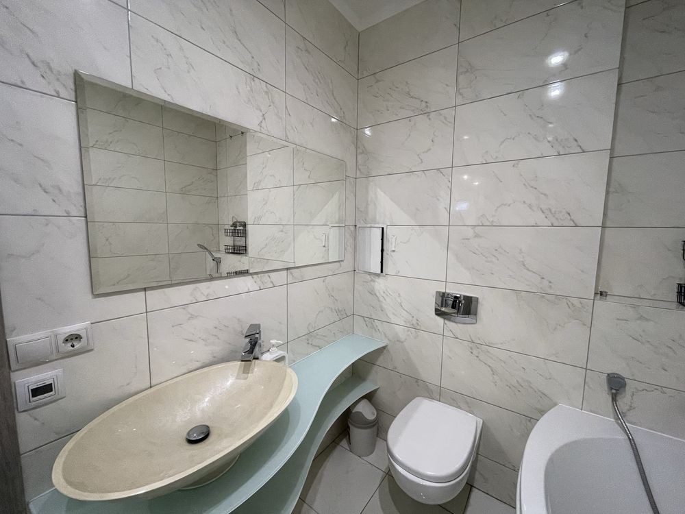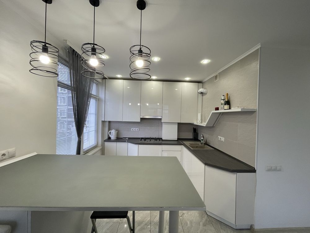 Перша здача. Пропонується в оренду сучасна квартира в новобудові біля м. Житомирська (Берестейський пр-т, 131а). В будинку є генератор (завжди є опалення, вода та працює ліфт). Квартира укомплектована всіма необхідними меблями та технікою. У кімнаті - двоспальне ліжко, розкладний диван, письмовий стіл, кондиціонер, телевізор, велика шафа для одягу. Санвузол суміщений, душова кабінка. Тихий двір, велика парковка. До метро Житомирська - 10 хвилин пішки. Вартість 16000 грн. Умови оренди: оплата за два місяці та послуги рієлтора (50%). комісія: 50%