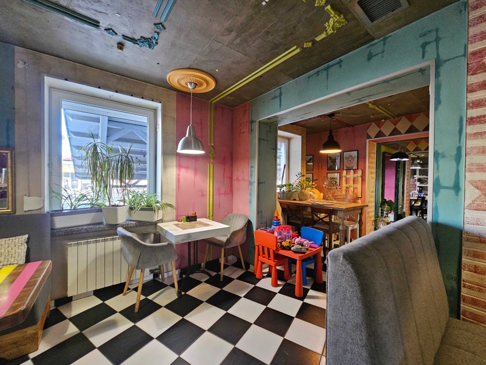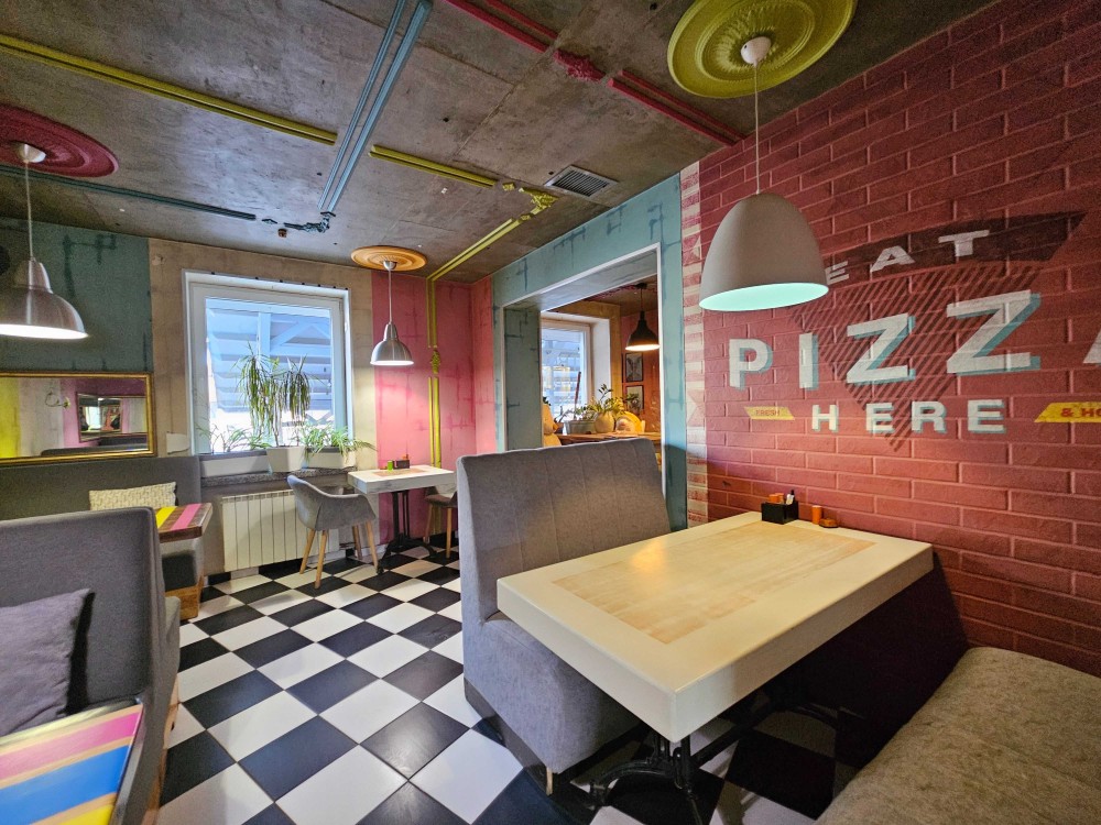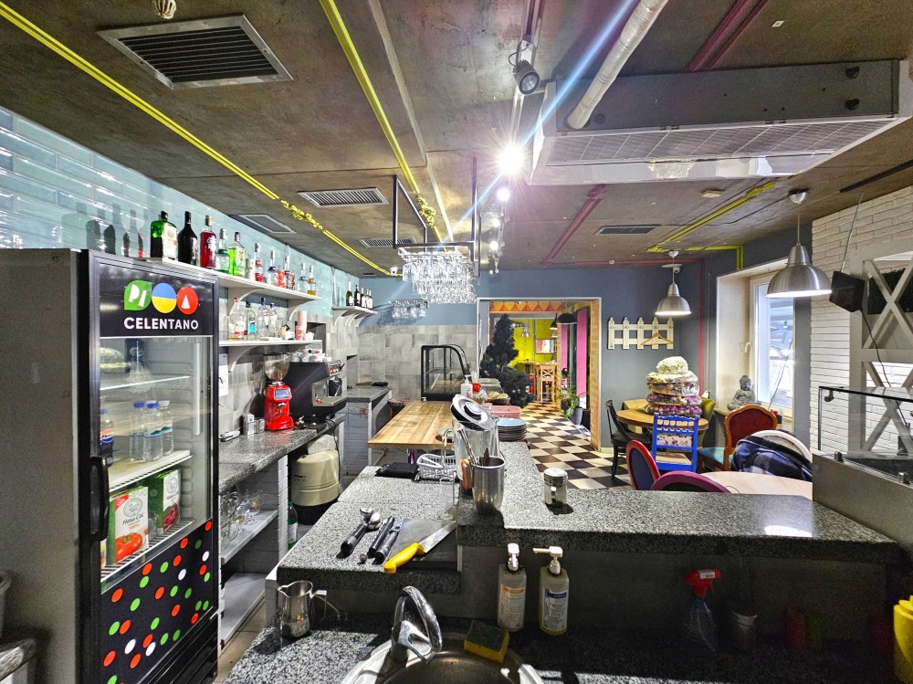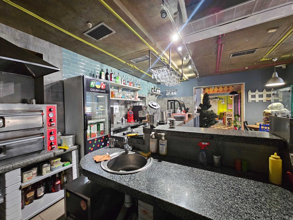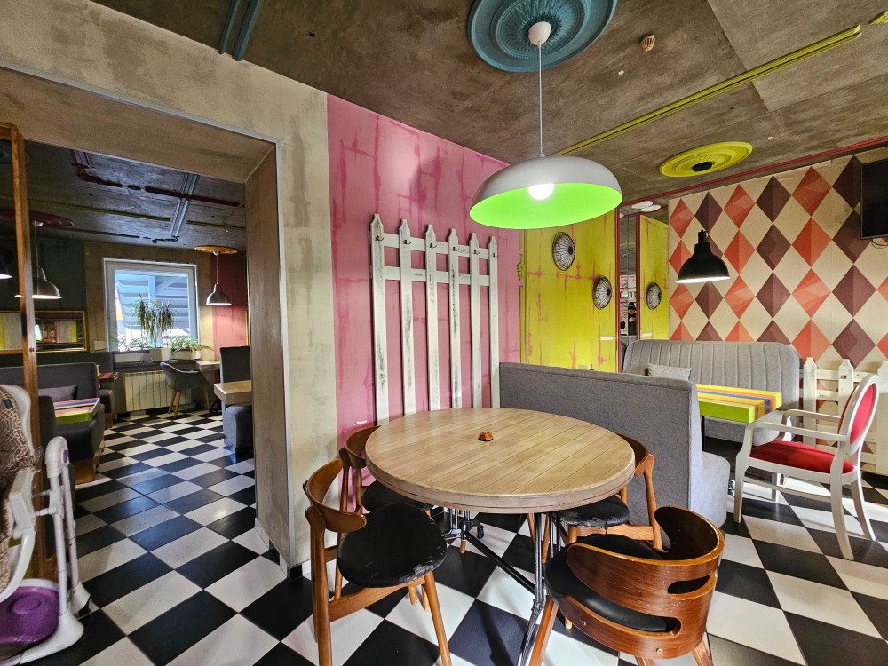 На данный момент помещение функционирует как пиццерия. Планировка продумана под коммерческое использование и при необходимости позволяет изменить вид деятельности, а также разделить объект на два отдельных помещения с самостоятельными зонами.