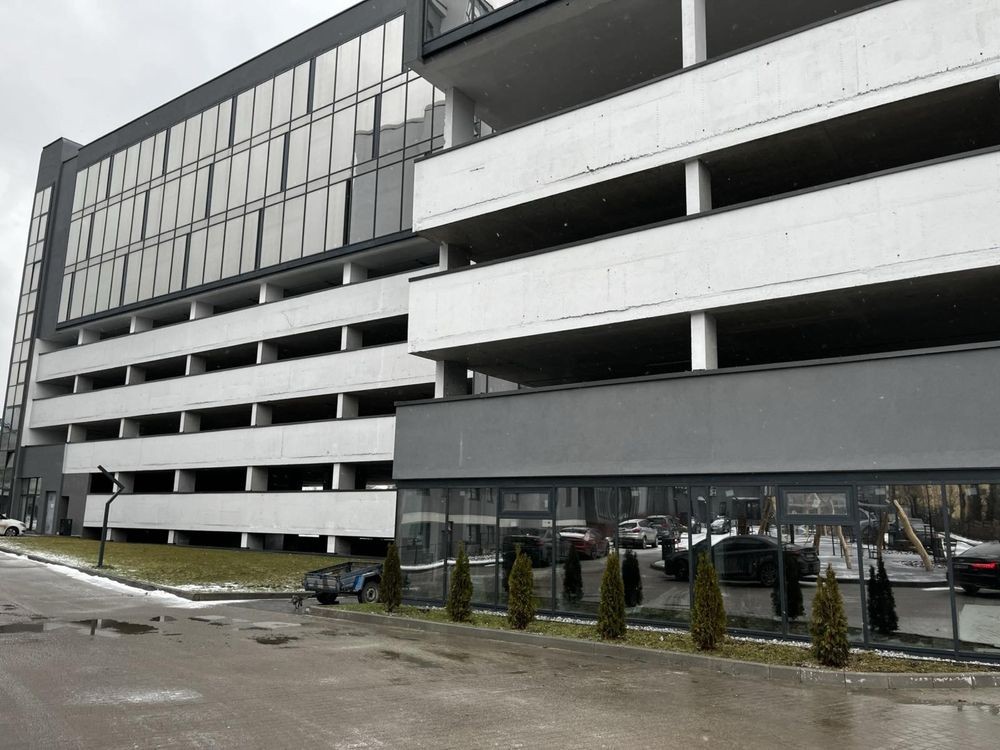 Над паркінгом знаходяться 3 поверхи комерційних приміщень.