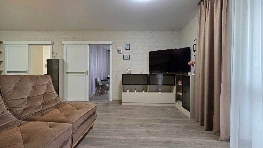 Правильне та зручне планування - прстора кухня-гостина і дві окремих спальні. Загальна площа 77 квадратних метри.