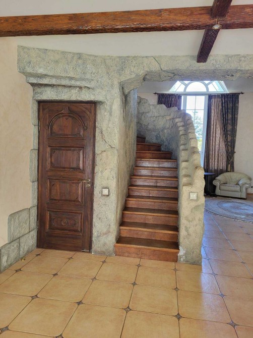 Будинок має велику вітальню та кухню з виходом на велику альтанку і мангальну зону, три кімнати, гараж на 2 авто (в будинку), власний басейн, більярдна, два санвузли, три підсобних приміщення, погріб, сарай.