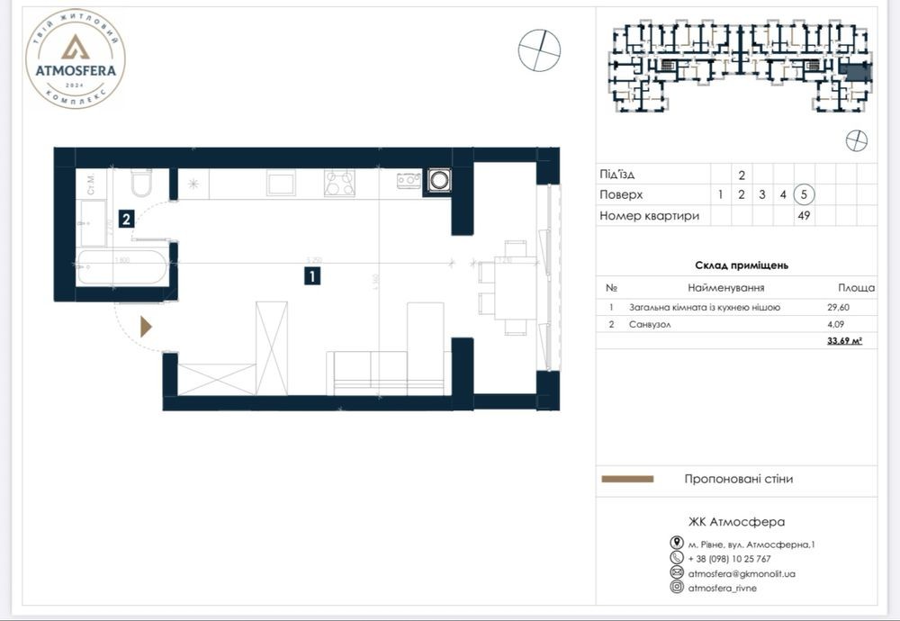 Нова Квартира Студія у новобудові ВІД ЗАБУДОВНИКА - 32.7 м2 - фото 2