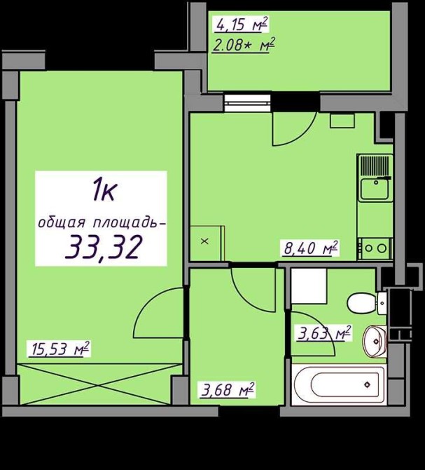 • Общая площадь 33 м2