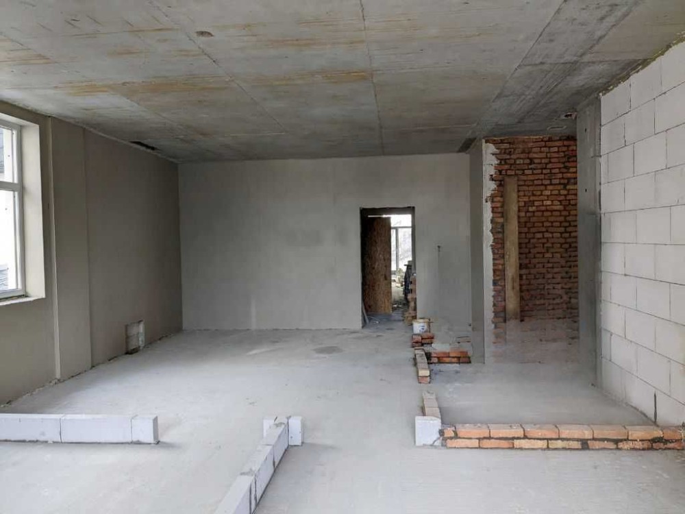 + Якість на віки. Будинок збудовано на совість, з дотриманням усіх норм. Товсті стіни, якісна звукоізоляція, правильна геометрія кімнат. Стан під чистову обробку: стіни зведені, стартова штукатурка вже є — брудна робота позаду, попереду лише творчість.