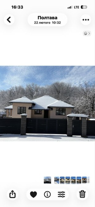Продається капітальний житловий будинок в охайному, доглянутому стані: заходь - живи. Рік побудови - 2014. Розташування: Київська область, Бориспільський район, село Дударків (район зрубів). Відстань від воріт до ст. метро "Бориспільська" - 22 км, до ст. метро "Лісова" - 26 км. Під'їзд асфальтований. Загальна площа 216,8 кв.м., житлова - 111,6 кв.м., кухня - 12,4 кв.м., відкрита тераса 22 кв.м. В будинку чотири житлові кімнати (спальні), вітальня, два с/вузли з душовими кабінами, котельна, пральна, підвал, гараж на два авто (автоматичні ворота), погріб. Трифазне електропостачання з окремими стабілізаторами (на кожну фазу). Встановлено бензиновий генератор потужністю 6,5 кВт з автоматичним вмиканням у разі зникнення напруги в мережі. Газовий (з джерелом безперебійного живлення) та електричний опалювальні котли, бойлер для підігріву води. Водопостачання - особиста свердловина глибиною 60 метрів з фільтраційною системою очищення води. Чотири накопичувальні ємності (септики): для фекальної води (з вентиляцією) та відведення дощової (талої) води. Відеонагляд, домофон, сигналізація, провідний Інтернет. Площа земельної ділянки 22 сотки. Цільове призначення: будівництво та обслуговування житлового будинку. На території: літня кухня з барбекю, господарче приміщення, погріб, теплиця з полікарбонату, літній душ з вбиральнею, вольєр площею 13 кв.м., садок, газон з автоматичним поливом, город площею 7 соток. У садку: яблуні літніх та осінніх сортів, сливи, персики, вишні, черешня, айва, груша, смородина, виноград. По периметру ділянки паркан з профільного листа (фасадна частина на фундаменті з каменю). Автоматичні розсувні ворота. Будинок не перепродавався. Первісний документ - Свідоцтво про право власності. Поштова адреса, реєстрація місця проживання. Продаж за ціною власника, без комісійних посереднику.