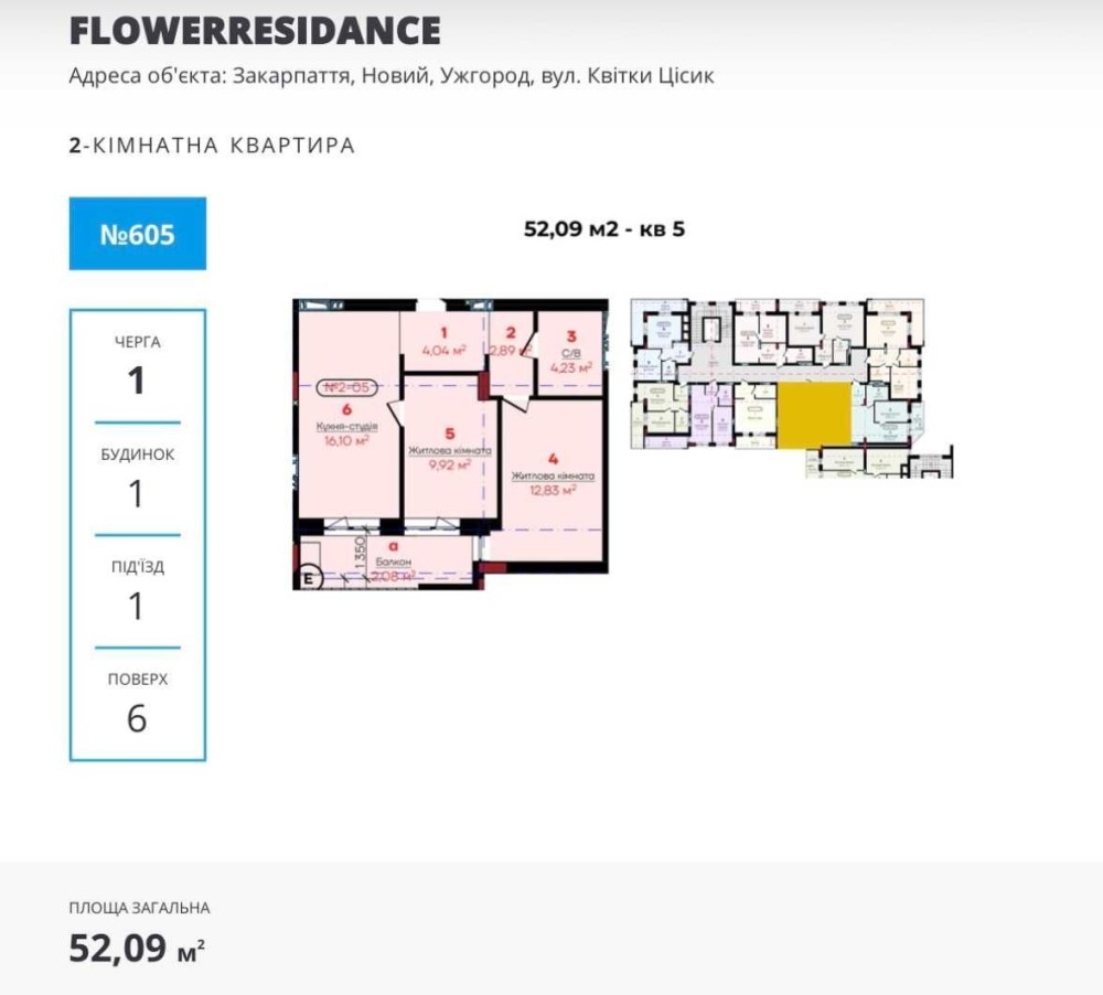 • Общая площадь 52.09 м2