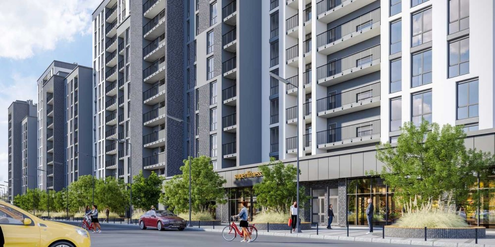 • Житловий комплекс матиме облаштовану територію зі спортмайданчиками, зеленими насадженнями, місцем для вигулу собак.