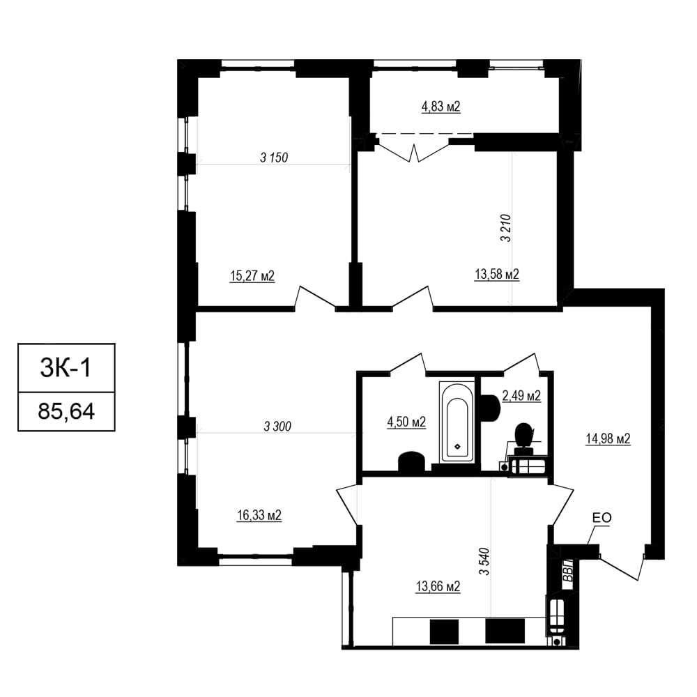 • Общая площадь 85.64 м2
