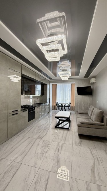 Велика кухня-вітальня з зоною відпочинку та TV (25 кв.м.), окрема спальна кімната (18кв.м.), ванна кімната та величезний балкон.