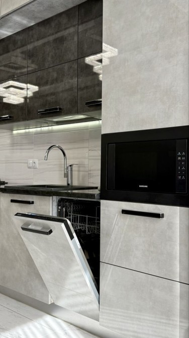 З техніки є: телевізора зі Smart TV, кондиціонер, великий холодильник, варильна поверхня, духова шафа, посудомийна машина, мікрохвильова піч, витяжка, бойлер, пральна машина, праска.