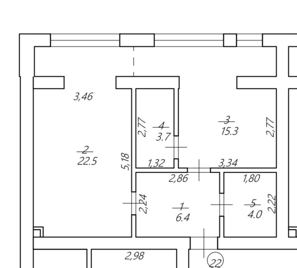 • Площадь кухни 22.5 м2