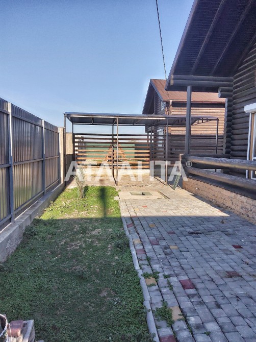 На территории обустроен навес для автомобиля, двор выложен тротуарной плиткой.