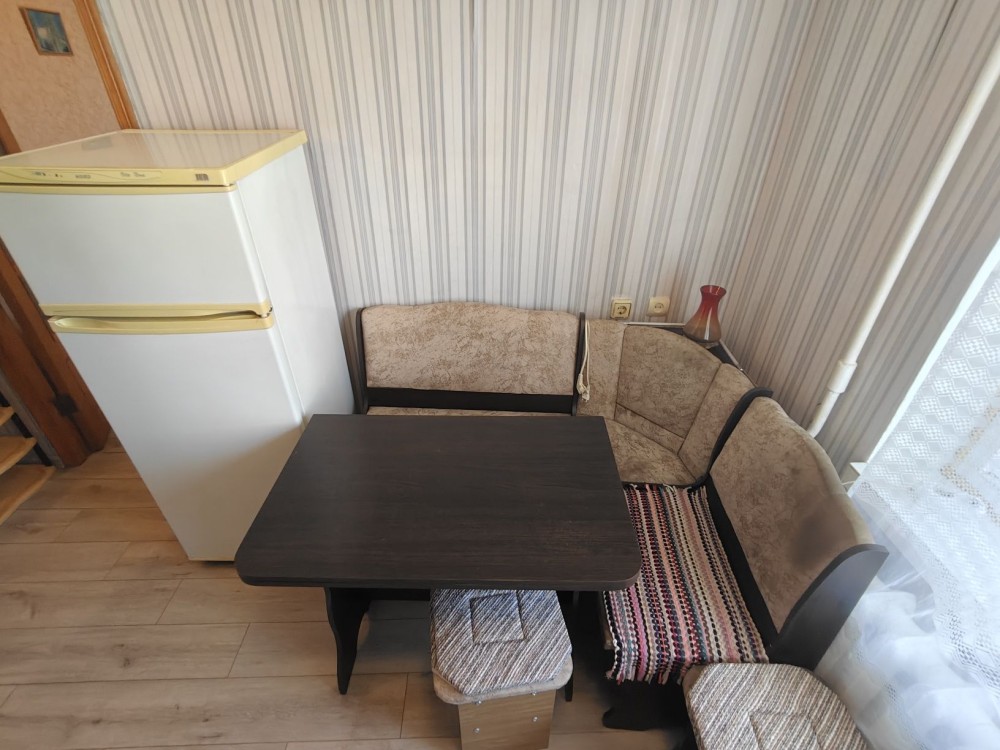 Диван, кухонный уголок, шкаф, тумбы — всё в хорошем состояниии.