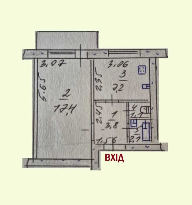 • Площадь кухни 7.2 м2