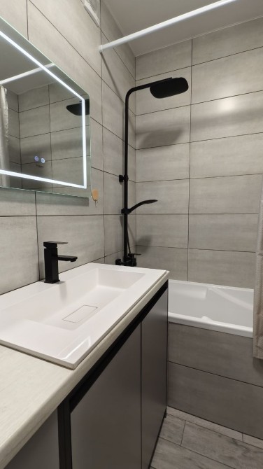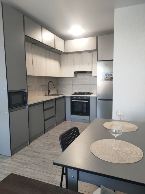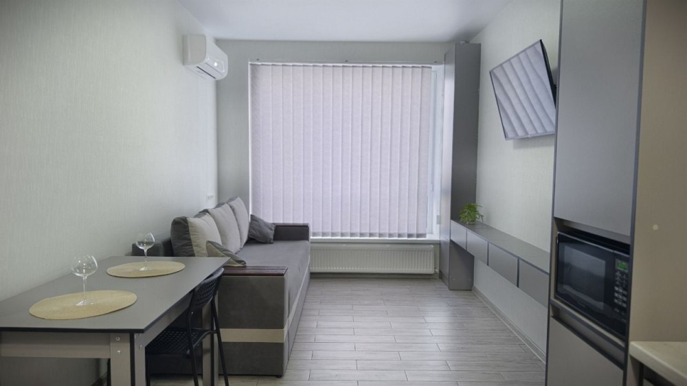 Квартира укомплектована меблями та технікою (холодильник, варильна поверхня, духова шафа, мікрохвильовка, пральна машина, кондиціонер, телевізор)