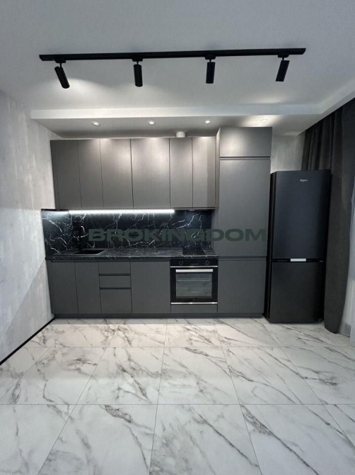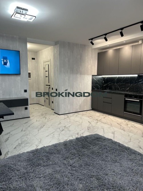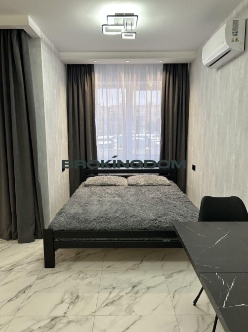 • Просторе планування, велике ліжко, кухонні меблі з індукційною плитою, витяжка, духовка, холодильник.