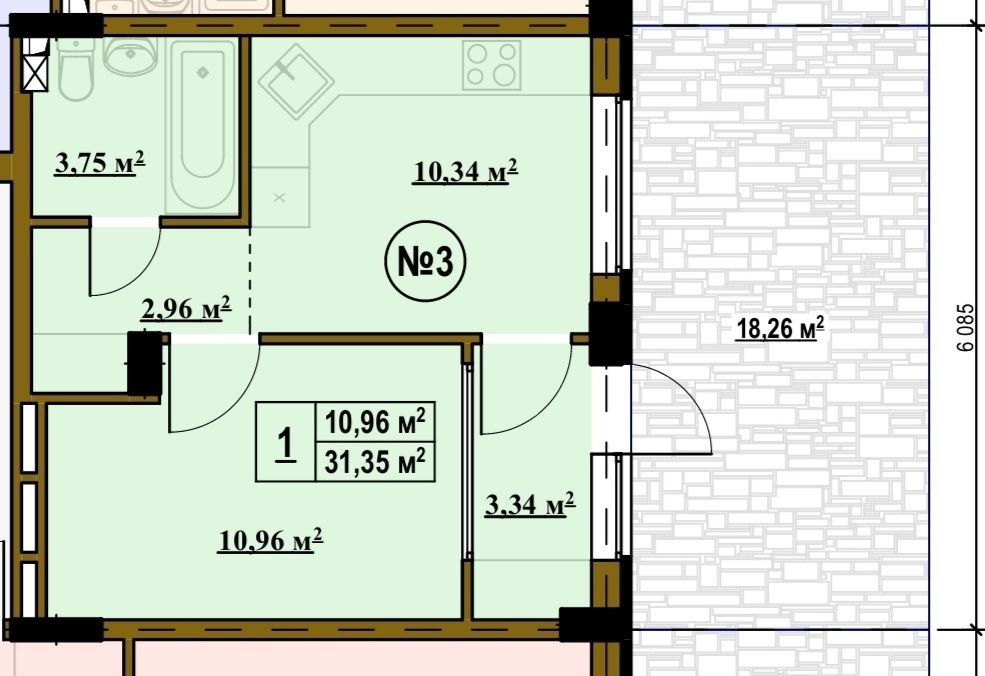 • Общая площадь 31.35 м2