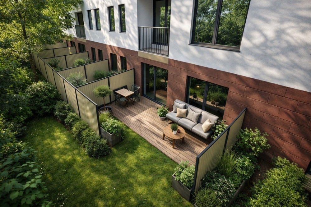 Квартира з оголошення матиме окремий вхід та відгороджену зону BBQ . Простора кухня 10,34м² та комфортна спальня кімната 10,96м².