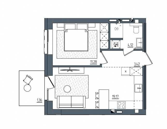 Площа - 39,35 Поверх: 3-й (комфортний середній поверх)