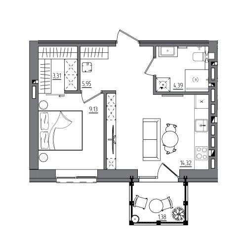 • Общая площадь 39.35 м2