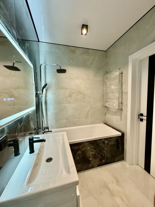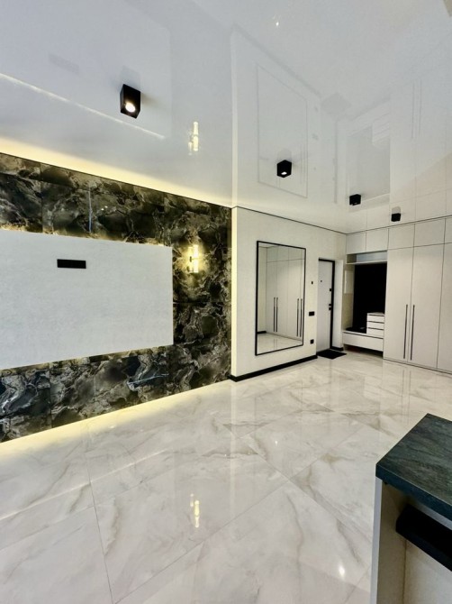 Квартира з якісним сучасним ремонтом, виконаним у світлих тонах — простір виглядає стильно та дорого.