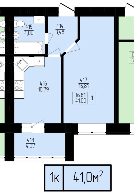 • Общая площадь 41 м2