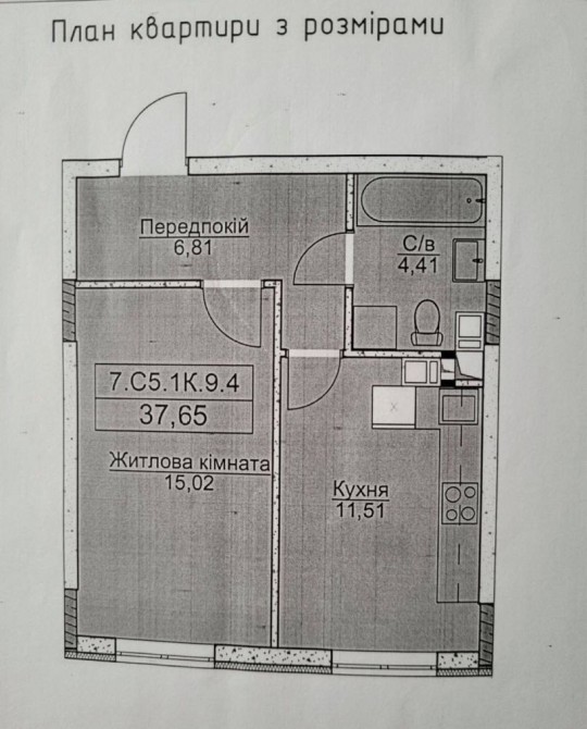 Площа 37,6 м2