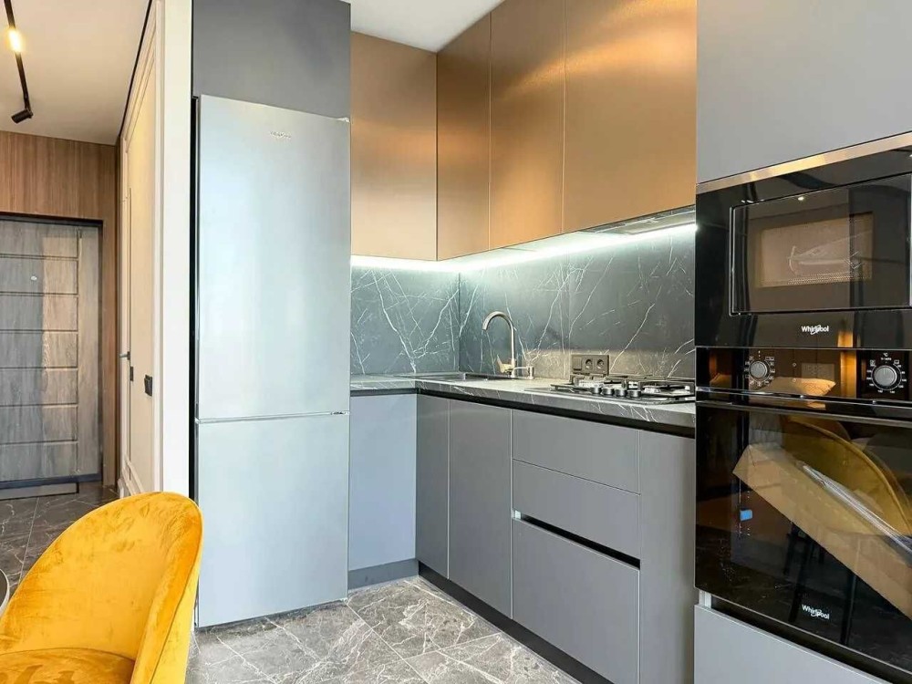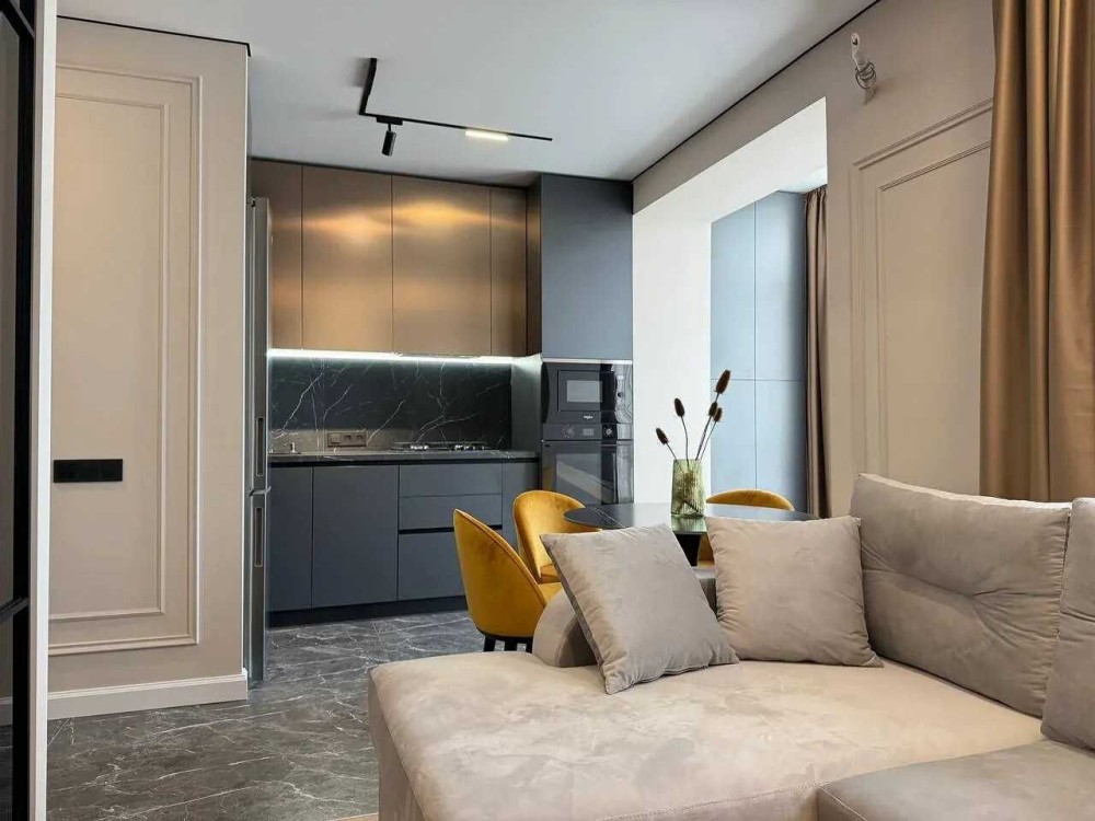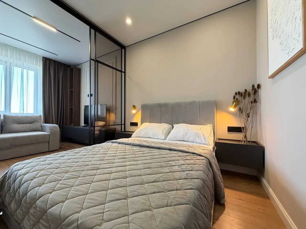 Продається стильна однокімнатна квартира з ремонтом поблизу центру. Квартира знаходиться у житловому комплексі «Містечко Центральне», який має розвинену інфраструктуру, підземний паркінг, торговий центр, дитячі та спортивні майданчики