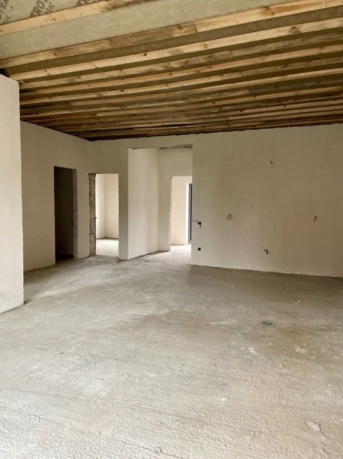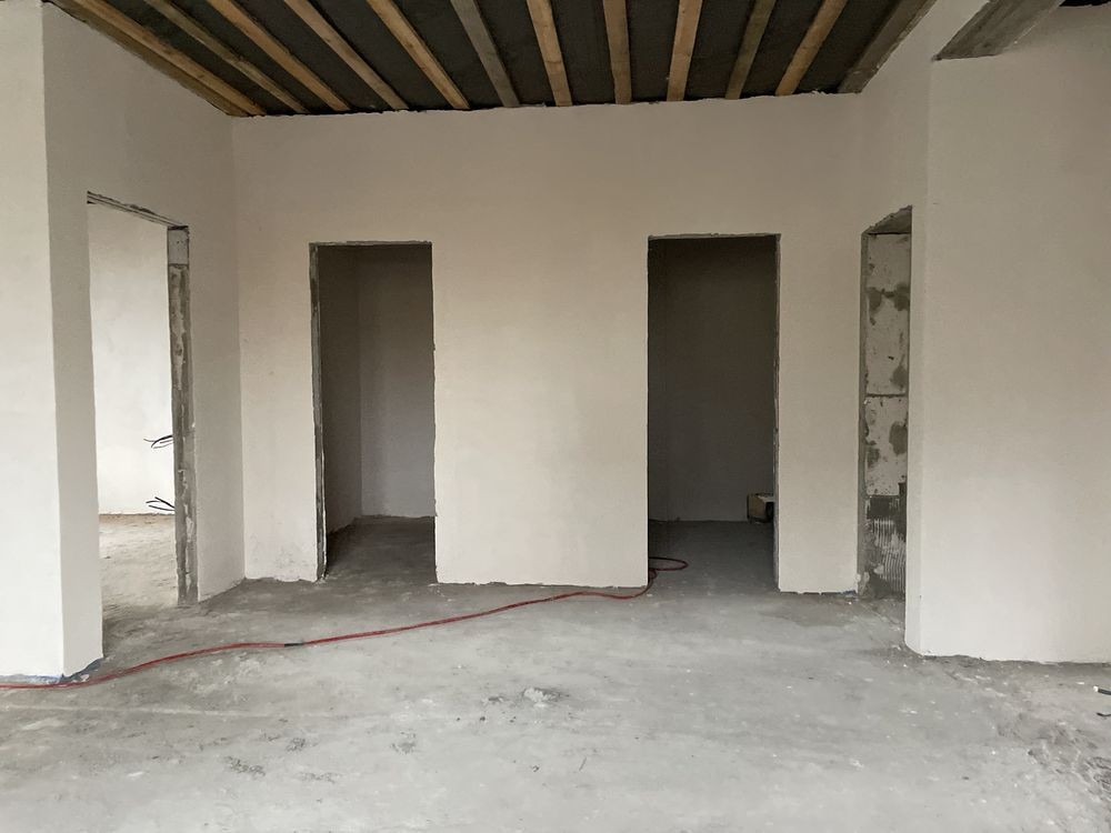 Внутрішнє оздоблення: стіни -гіпсова штукатурка, розведення електрики по точкам. Розведення теплого полу, сантехніки та стяжка підлоги.