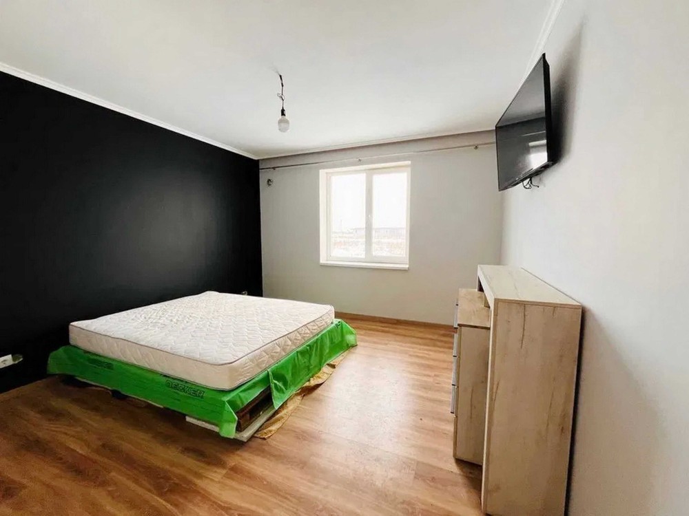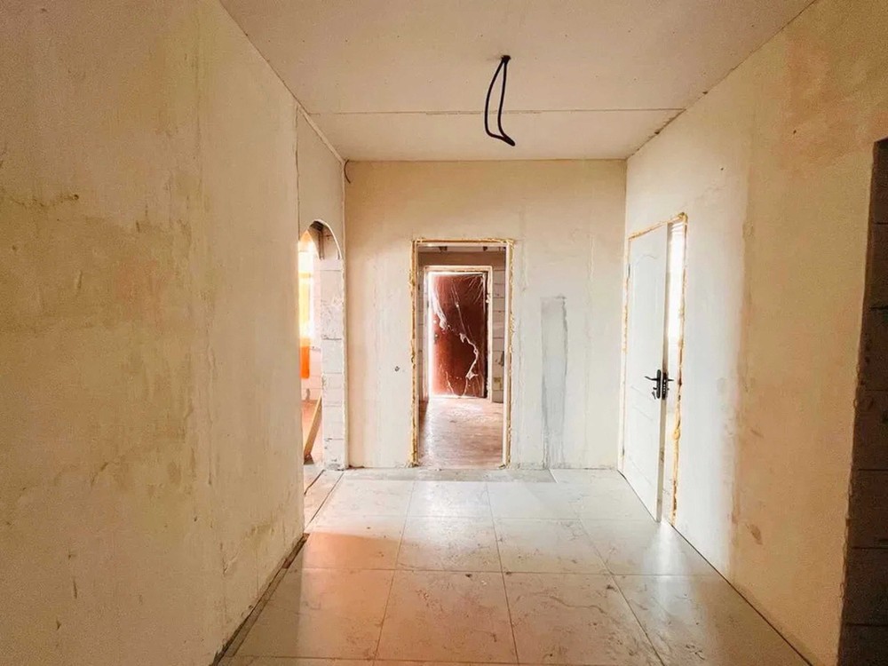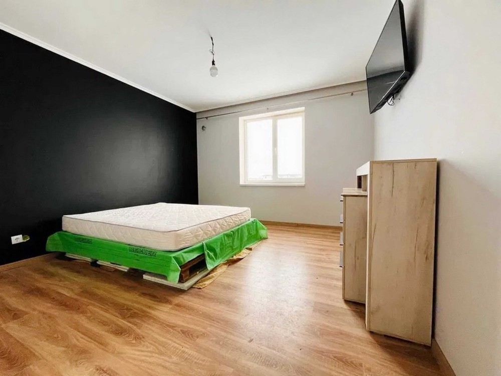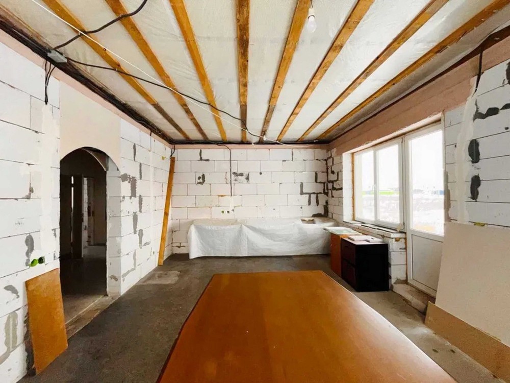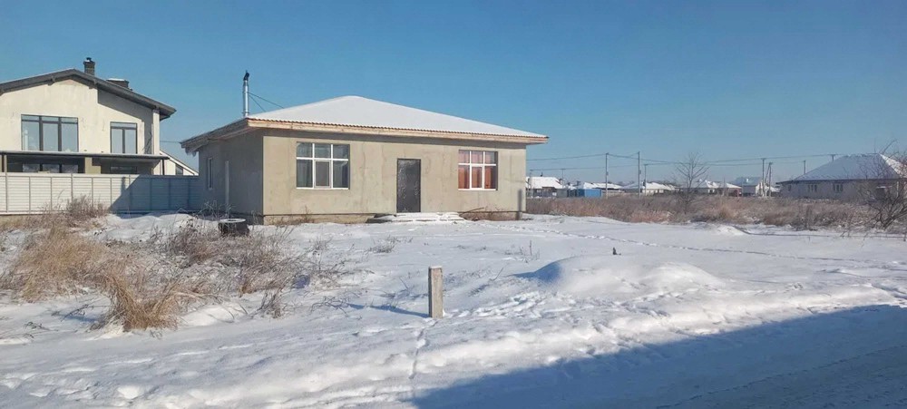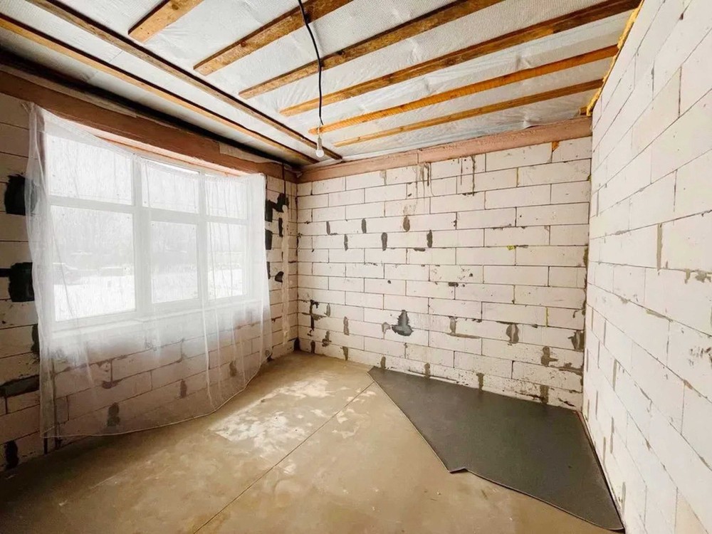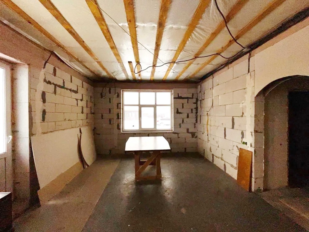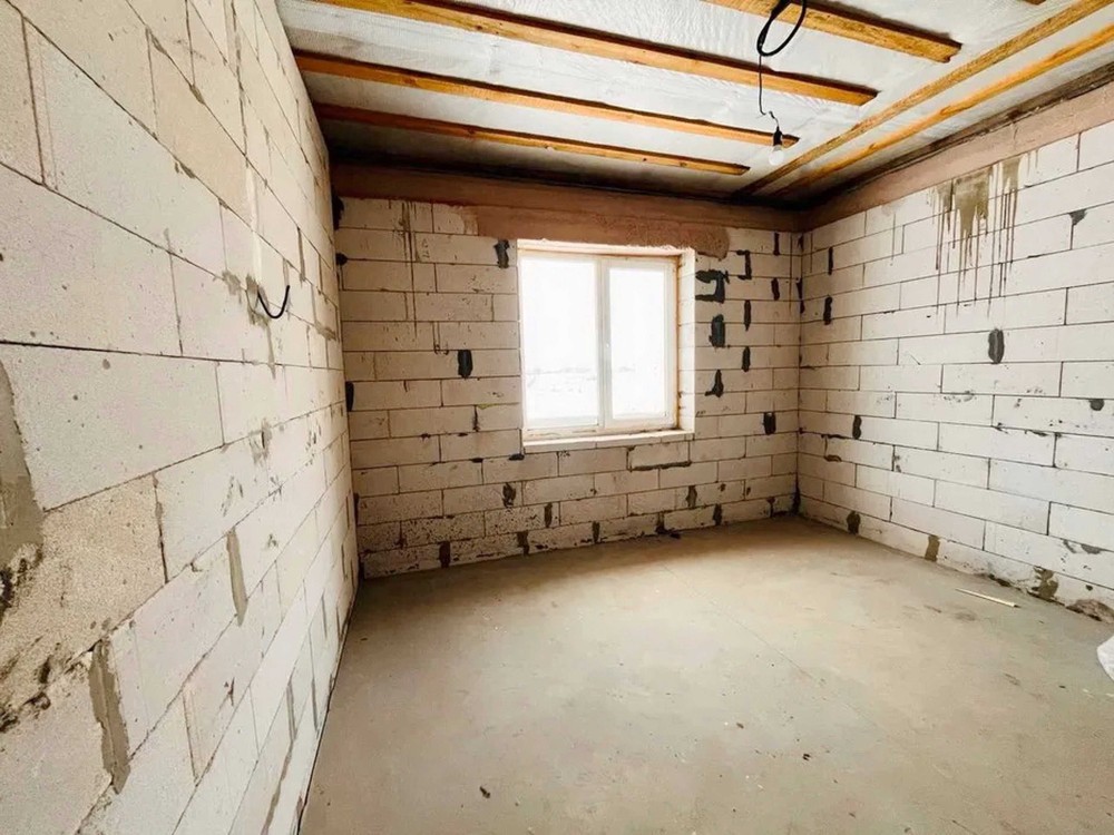 Продумане планування: простора кухня-вітальня 24 м² з виходом на майбутню терасу та три окремі світлі кімнати. Будинок теплий та енергоефективний: стіни з газоблоку (300 мм) утеплені мінватою 100 мм, дах утеплений 350 мм мінвати. По всьому будинку — тепла підлога.